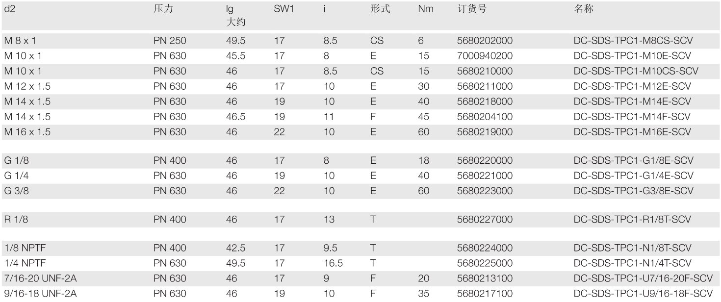 测压接头,带旋入式固定螺纹