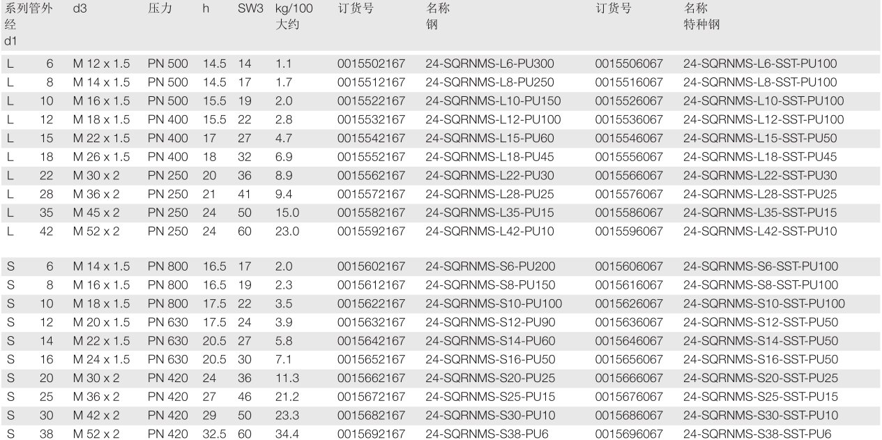 钢套件/不锈钢套件由下列组件组成